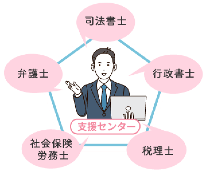 私たちは様々な士業と提携していますので、窓口1つでお手続きが可能です。